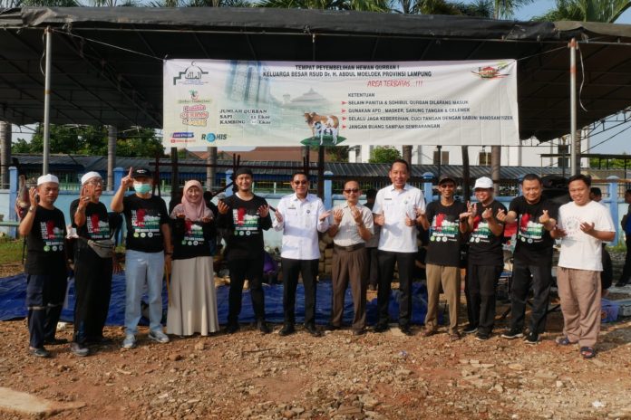 Bandar Lampung – Dalam rangka memperingati Hari Raya Idul Adha 1445 H, ROHIS RSUD Dr. H. Abdul Moeloek Provinsi Lampung menyelenggarakan acara penyembelihan hewan qurban pada Rabu (19/6) di Halaman Parkir ex Gedung PBH dan di Metro Kibang.