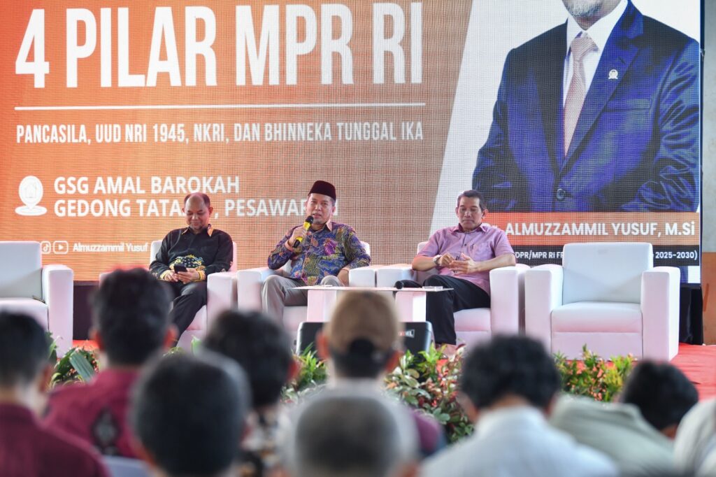 Dalam paparannya, Almuzzammil Yusuf menekankan bahwa 4 Pilar merupakan fondasi kehidupan berbangsa dan bernegara. “Pancasila adalah dasar dan ideologi negara, UUD 1945 konstitusi negara, NKRI bentuk negara, dan Bhinneka Tunggal Ika perekat persatuan. Keempatnya harus terus ditanamkan, terutama di kalangan akademisi dan generasi muda,” ujarnya.