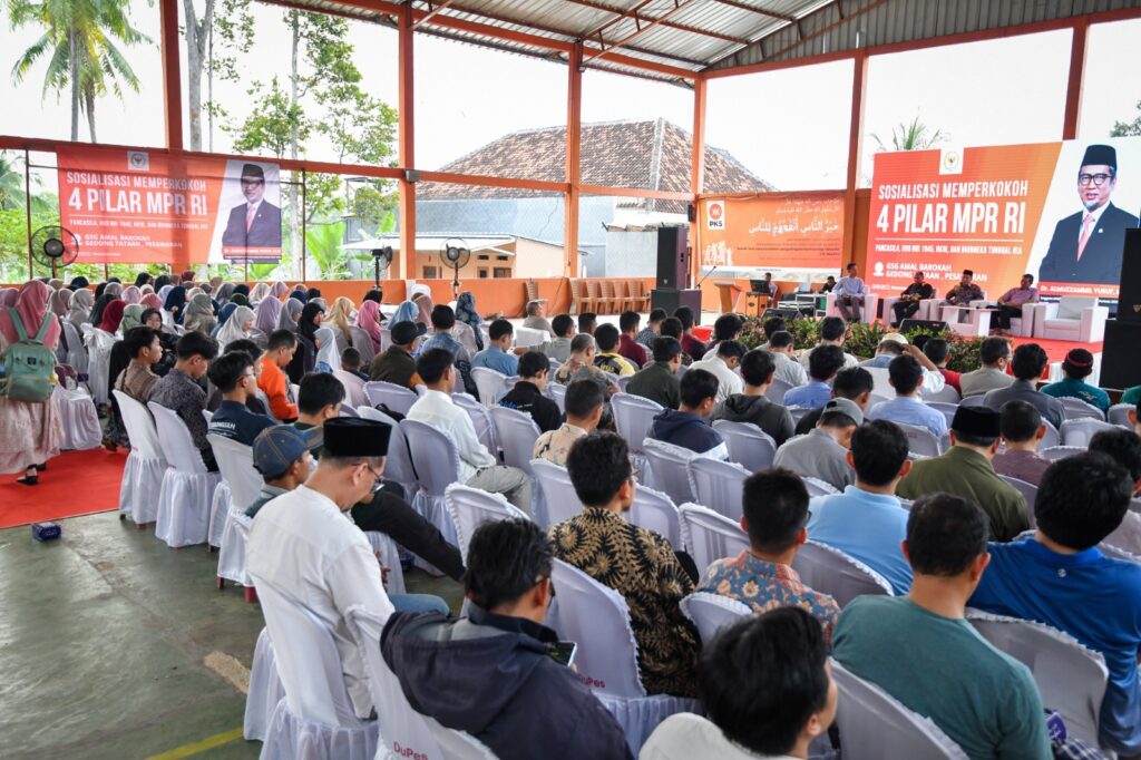 Pesawaran – Sosialisasi Memperkokoh 4 Pilar MPR RI yang digelar di GSG Amal Barokah, Pesawaran, Minggu (7/9), menghadirkan ratusan dosen dan tenaga pendidik dari berbagai perguruan tinggi di Lampung. Kegiatan ini menghadirkan narasumber dari MPR RI, Dr. H. Almuzzammil Yusuf, M.Si, yang menegaskan pentingnya penguatan nilai kebangsaan melalui Pancasila, UUD 1945, NKRI, dan Bhinneka Tunggal Ika.