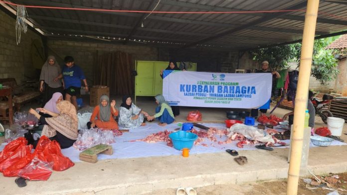 Tegineneng – LAZDAI selesai laksanakan penyembelihan dan pendistribusian hewan kurban sebanyak 2 ekor sapi ke Dusun Sidobasuki Kec. Tegineneng yang dipotong setelah sholat idul adha lalu.