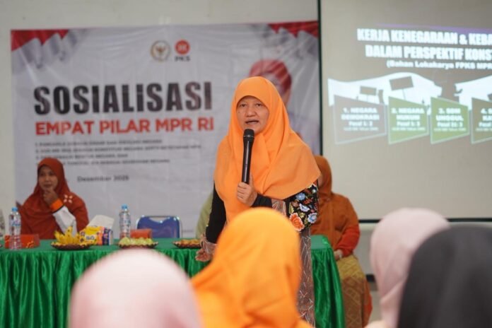 Surabaya — Anggota MPR RI Fraksi PKS Dapil Jawa Timur 1, Reni Astuti, S.Si., M.PSDM., menggelar Sosialisasi Empat Pilar MPR RI bersama Bunda PAUD dan KSH Kelurahan Banyu Urip, Surabaya, Senin, 15 Desember siang.