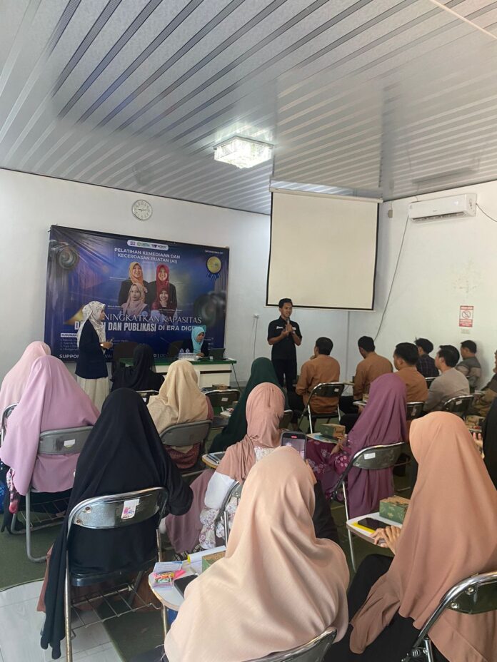 Bandar Lampung – Sebanyak 50 peserta dari kalangan pelaku UMKM dan masyarakat umum mengikuti Pelatihan Kemediaan dan Kecerdasan Buatan (AI) yang digelar di Aula Dewan Dakwah Lampung (9/7).