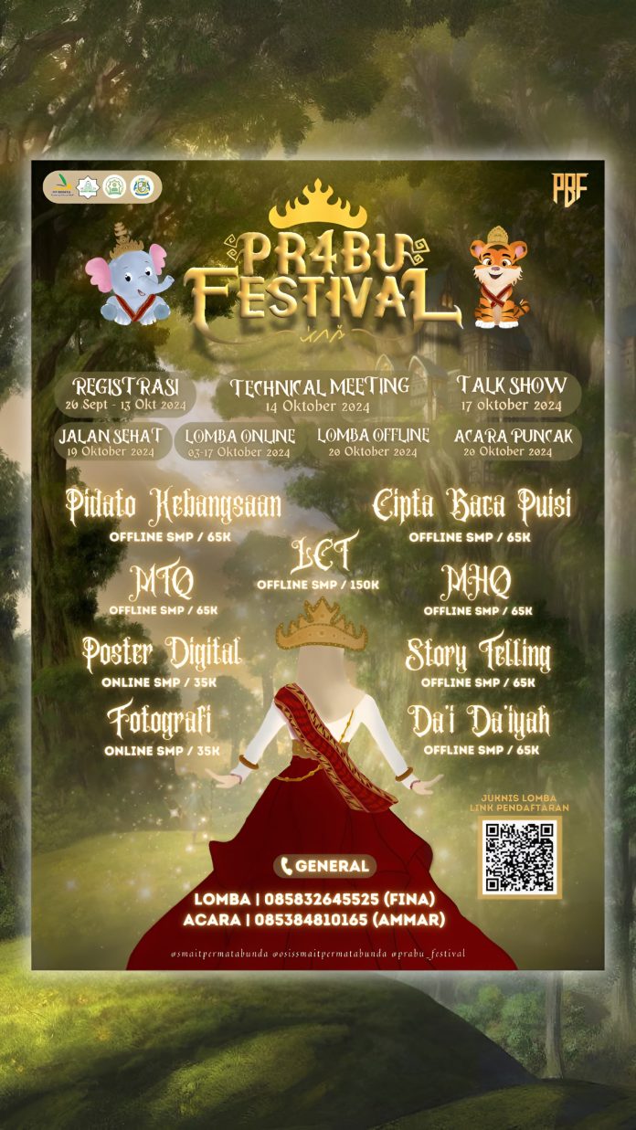 “OSIS-MPK SMAIT PERMATA BUNDA mempersembahkan “PRABU FESTIVAL 4 : BEGAWI” sebagai acara tahunan SMAIT Permata Bunda yang diselenggarakan dengan berbagai rangkaian acara, salah satunya yaitu Perlombaan skala 🅝🅐🅢🅘🅞🅝🅐🅛