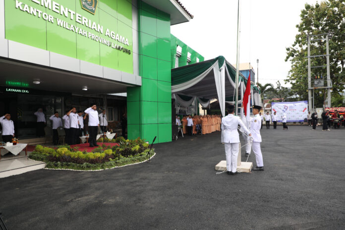 Bandar Lampung – Pj. Gubernur Lampung Samsudin menjadi Pembina Upacara, dalam peringatan Hari Amal Bakti (HAB) ke-79 Kementerian Agama Republik Indonesia, di Halaman Kantor Wilayah Kemenag RI Provinsi Lampung, Bandarlampung, Jum’at (03/01/2025).