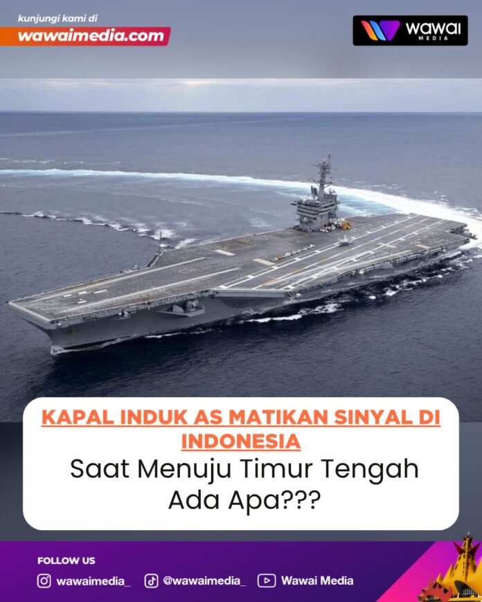 Kapal induk milik Amerika Serikat (AS), USS Nimitz (CVN-68), dilaporkan mematikan sistem pelacak otomatis (transponder) saat berlayar di wilayah perairan antara Indonesia dan Malaysia. Langkah itu diyakini sebagai bagian dari pergerakan militer AS menuju kawasan Timur Tengah di tengah meningkatnya ketegangan antara Iran dan Israel.