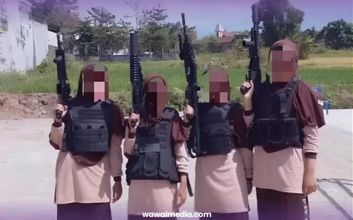 Magetan – Sebuah foto yang menampilkan sejumlah santriwati membawa senjata airsoft gun dan mengenakan rompi anti peluru menjadi viral di media sosial. Setelah penyelidikan, diketahui bahwa foto tersebut diambil di Pondok Pesantren Baitul Quran Al Jahra Magetan, Jawa Timur.