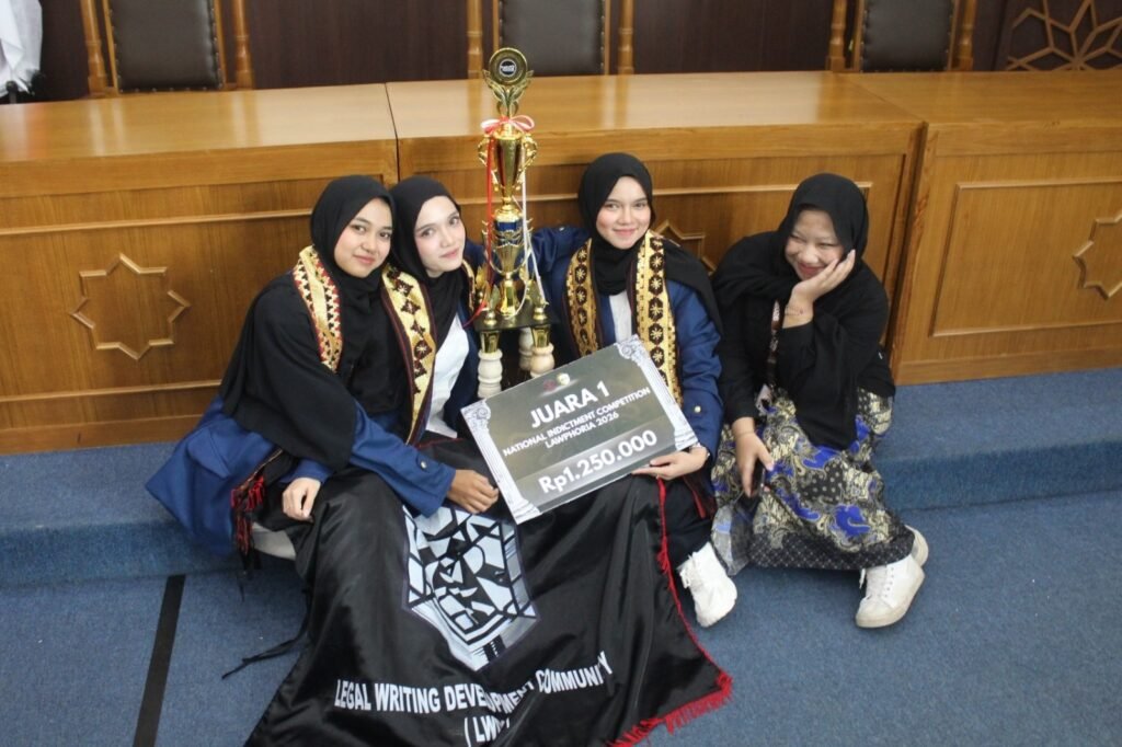 (Unila): Delegasi mahasiswa Fakultas Hukum (FH) Universitas Lampung (Unila) yang tergabung dalam Unit Kegiatan Mahasiswa Fakultas Legal Writing Development Community (UKMF LWDC) berhasil meraih Juara I Kompetisi Surat Dakwaan pada ajang Lawphoria 2026 yang diselenggarakan Fakultas Hukum Universitas Muhammadiyah Yogyakarta (UMY).