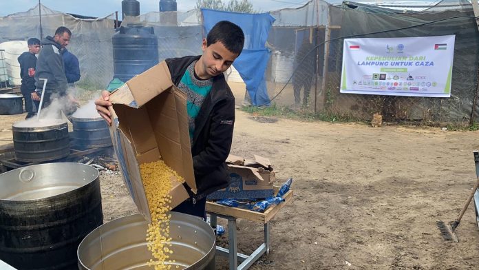 Bandar Lampung – Masyarakat Lampung bersama Yayasan LAZDAI Lampung telah menyediakan bantuan berupa makanan siap saji bagi para pengungsi yang berada di Raffah, Gaza Selatan pada bulan Januari 2024.