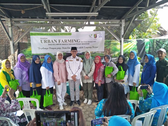 Bandarlampung – Urban farming adalah konsep yang memberdayakan masyarakat perkotaan untuk memenuhi kebutuhan pangan keluarga mereka sendiri dengan menanam beragam sumber makanan di lahan terbatas. Hal ini sejalan dengan salah satu program unggulan dari Komunitas Ayo Menanam Indonesia (KAMI). Dalam upaya memberikan pembekalan tentang urban farming, KAMI menggelar pelatihan urban farming mulai dari hulu sampai hilir bagi kelompok wanita tani (KWT) dan para pegiat menanam di Bandar Lampung.