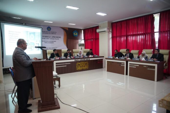 (Unila): Program Studi Doktor Ilmu Lingkungan, Fakultas Pascasarjana Multidisiplin Universitas Lampung (Unila) kembali meluluskan seorang doktor melalui sidang terbuka promosi doktor atas nama Muhamad Komarudin. Sidang diselenggarakan di Aula Pascasarjana Unila, Senin, 4 Agustus 2025.
