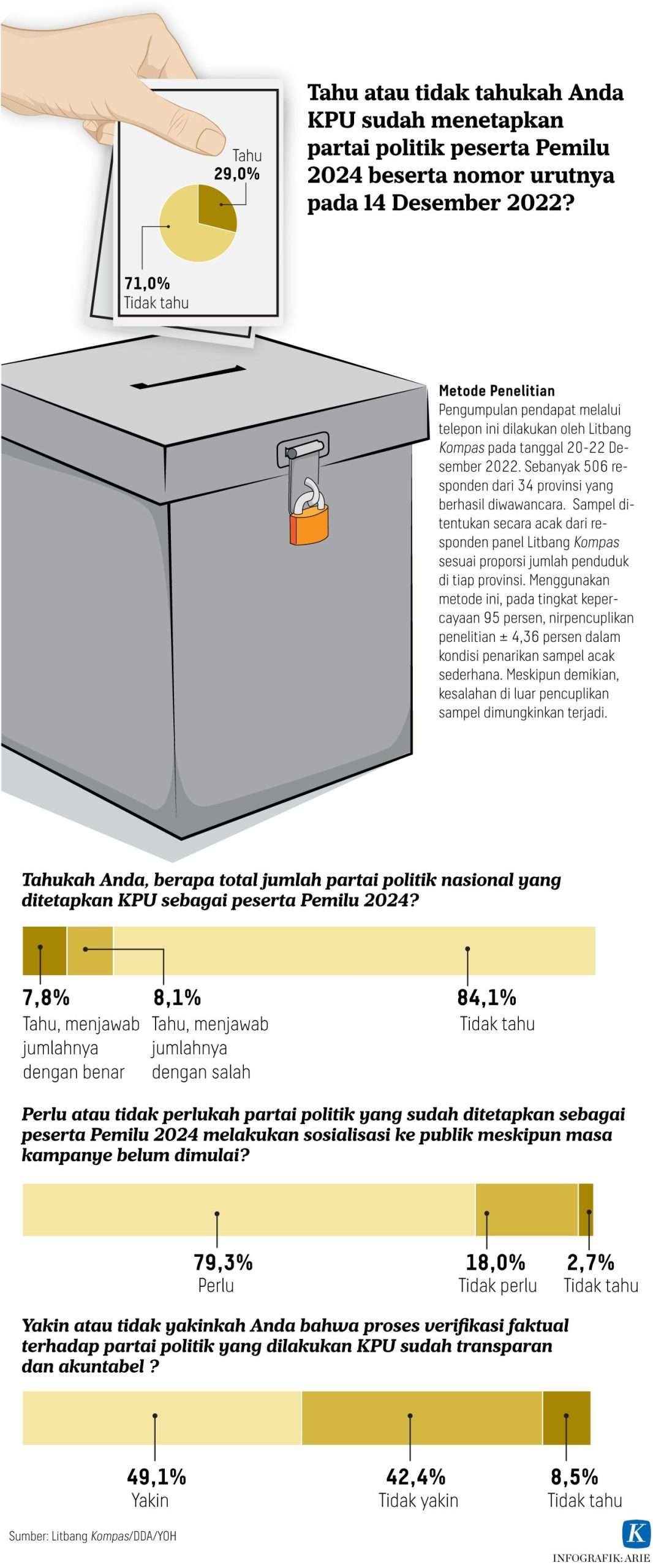 Jajak pendapat Litbang Kompas menunjukkan, 79,3 persen responden mengakui perlunya partai politik melakukan sosialisasi kendati belum masuk masa kampanye Pemilu 2024.