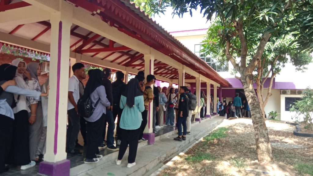 Massa antrian sudah memenuhi lorong Gedung J FKIP sejak pukul 08.00 pagi, namun proses pemungutan suara lambat berjalan hingga sampai pukul 12.50 WIB massa terus berdatangan dan memenuhi pintu gedung J FKIP hingga lorong Edu Fun FKIP Unila.