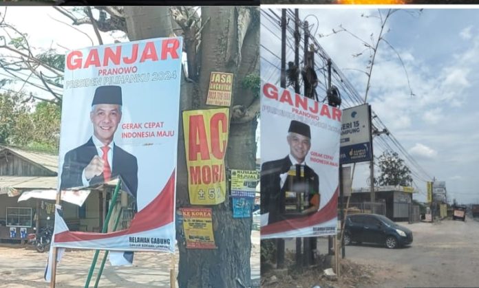 Bandarlampung – Perusakan alat peraga sosialisasi dalam bentuk baliho calon presiden Ganjar Pranowo di 34 titik wilayah Bandar Lampung telah menimbulkan pertanyaan besar. Beberapa baliho yang terkena dampak perusakan di antaranya terletak di Jalan Soekarno Hatta No 17, Rajabasa Raya, Kecamatan Rajabasa, Kota Bandar Lampung. Selain itu, baliho di Jalan Soekarno Hatta No 2, Rajabasa Jaya, juga mengalami kerusakan mencapai 100%. Sejumlah baliho ini merupakan hasil kerja keras Relawan Ganjar Pranowo yang ingin memperkenalkan capres Ganjar Pranowo kepada masyarakat.