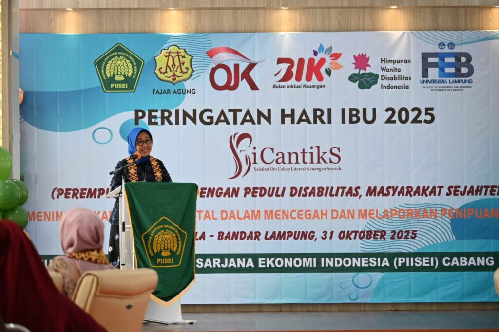 (Unila): Universitas Lampung (Unila) bersama Perkumpulan Istri Ikatan Sarjana Ekonomi Indonesia (PIISEI) Cabang Lampung, menyelenggarakan literasi keuangan dalam rangka memperingati Hari Ibu tahun 2025. Acara berlangsung di Gedung Student Centre Fakultas Ekonomi dan Bisnis (FEB) Unila, pada Jumat, 31 Oktober 2025.