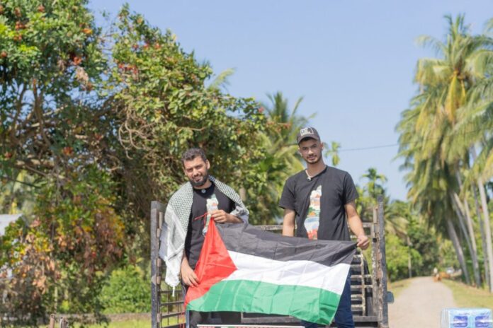 Raed bersama rekannya, Imran, mahasiswa Universitas Hasanuddin. Mereka menyalurkan berbagai bentuk bantuan yang berasal dari Brand Pasar Palestina dan Majelis Ta’lim Baitussyakirin.