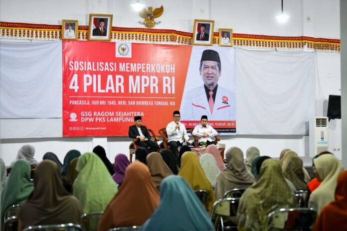 Bandar Lampung — Momentum bulan suci Ramadhan dimanfaatkan untuk memperkuat semangat kebangsaan. Dr. Almuzzammil Yusuf menggelar Sosialisasi 4 Pilar Kebangsaan yang dirangkaikan dengan buka puasa bersama kader dan relawan PKS, pada 17 Maret 2026 di GSG Ragom Gawi Sejahtera, Bandar Lampung.
