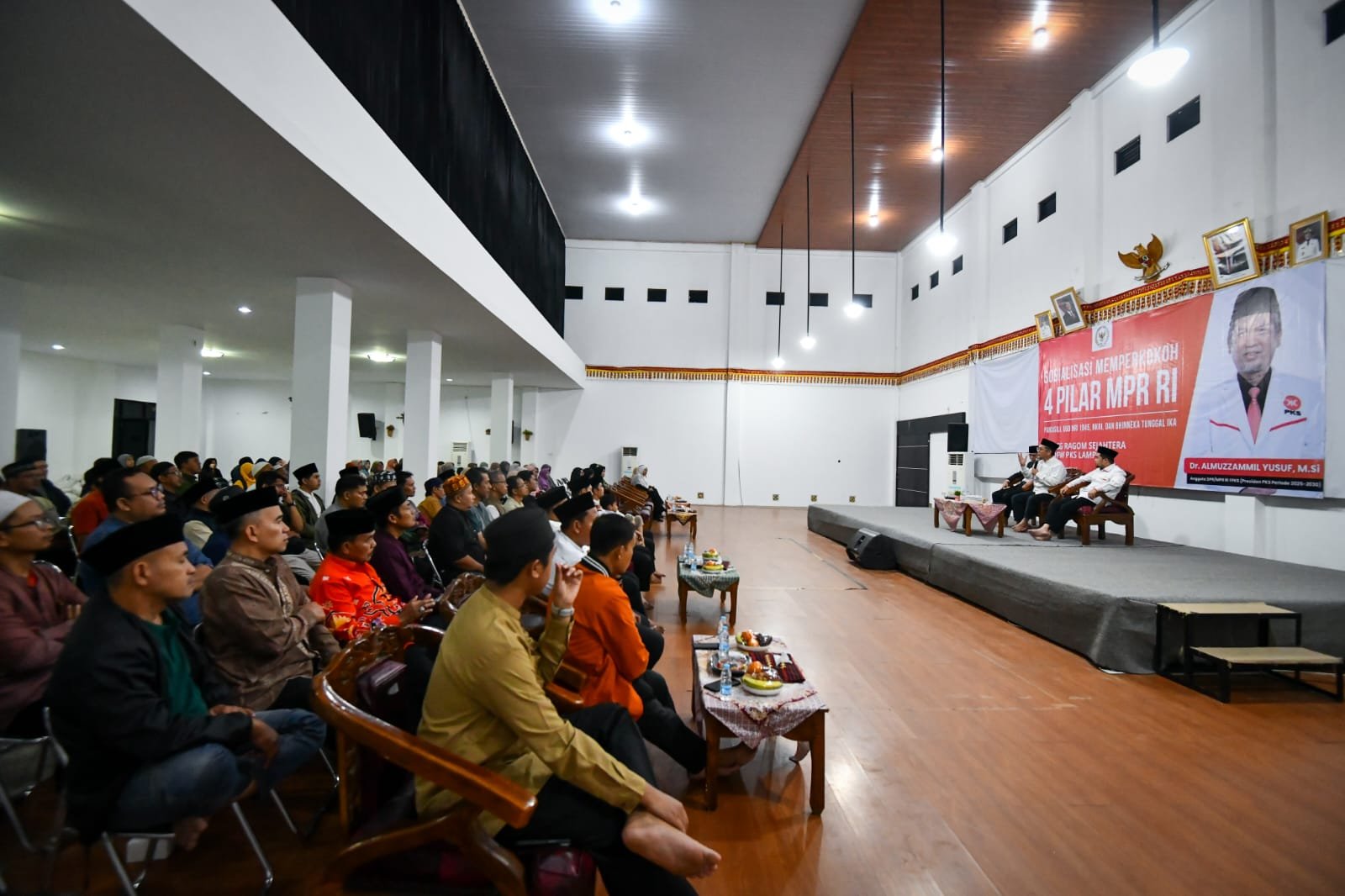 Bandar Lampung — Momentum bulan suci Ramadhan dimanfaatkan untuk memperkuat semangat kebangsaan. Dr. Almuzzammil Yusuf menggelar Sosialisasi 4 Pilar Kebangsaan yang dirangkaikan dengan buka puasa bersama kader dan relawan PKS, pada 17 Maret 2026 di GSG Ragom Gawi Sejahtera, Bandar Lampung.