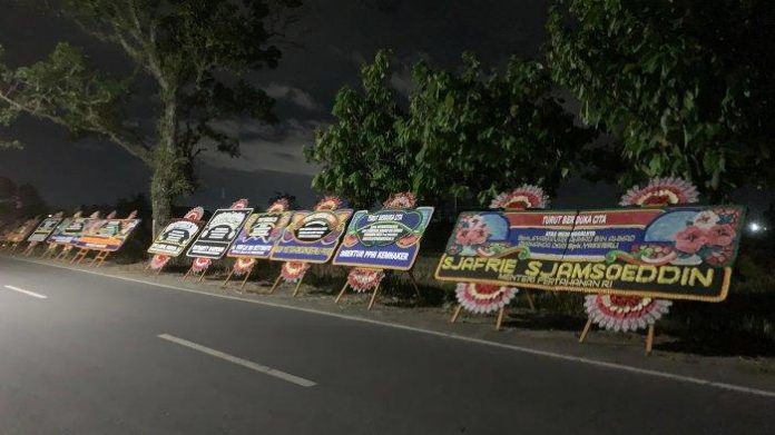 Sementara papan bunga ini berjejer di sepanjang kiri dan kanan jalan yang ada di sekitar rumah duka. Papan bunga masih terlihat terus berdatangan hingga Kamis malam.