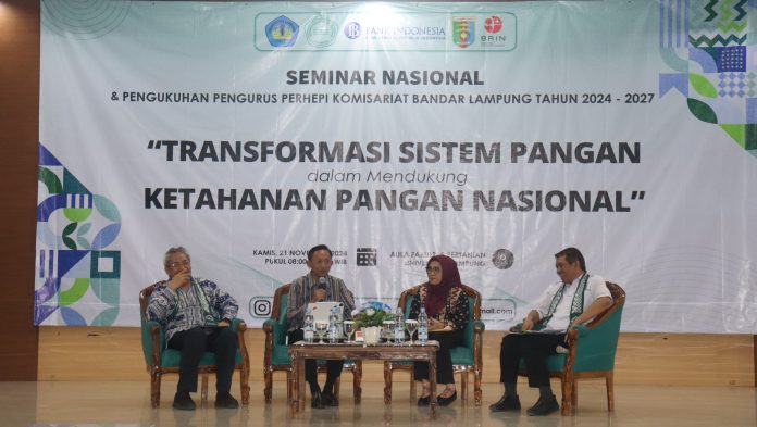 Bandar Lampung – Perhimpunan Ekonomi Pertanian Indonesia (PERHEPI) Komisariat Bandar Lampung sukses menggelar Seminar Nasional bertema Transformasi Sistem Pangan dalam Mendukung Ketahanan Pangan Nasional. Acara berlangsung di Aula Fakultas Pertanian Universitas Lampung dan dihadiri sejumlah pakar ekonomi, pengambil kebijakan, dan akademisi terkemuka.