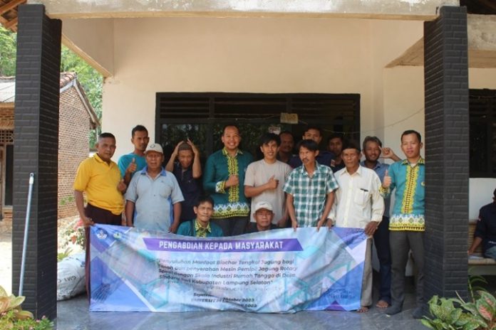 Lampung Selatan – Pada Senin, 2 Oktober 2023, Tim Pengabdian Universitas Lampung (UNILA) melaksanakan sosialisasi dan penyerahan Mesin Pemipil Jagung Rotary Spiral dengan Skala Industri Rumah Tangga di desa Sindang Sari, Tanjung Bintang, Lampung Selatan.