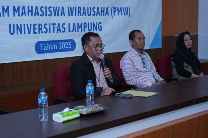 Bandar Lampung: Universitas Lampung (Unila) menyelenggarakan Pembinaan dan Pendampingan Program Mahasiswa Wirausaha (PMW) pada Rabu, 27 Agustus 2025, di aula lantai tiga UPA Perpustakaan Unila.