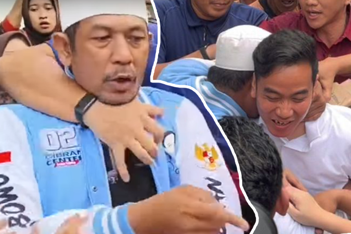 Dalam kunjungannya tersebut, Gibran berusaha untuk berinteraksi secara langsung dengan warga, bahkan membagikan susu kotak gratis kepada anak-anak. Namun, situasi menjadi semakin ramai ketika seorang pria paruh baya yang mengenakan jaket relawan Prabowo-Gibran memaksa memeluk Gibran secara paksa di tengah kerumunan, meskipun Paspampres sudah berusaha mencegahnya, namun pria itu langsung menarik tubuh Gibran secara paksa.
